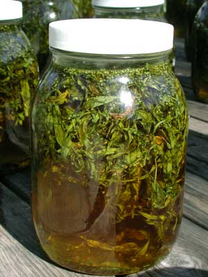 Considering that this powerful herb, its spirit, its essence, and its physical medicine, are going into oils which will be used for healing and blessing, it struck me as being particularly auspicious that abundance (as both an idea in our collective consciousness, and as an actual fact) was a factor in our working with it. By directly contradicting the subliminal sense of scarcity often present when working with precious herbs, abundance becomes a potent factor in the magic of the process. Daniel (former FES gardener) described a similar experience with last year's overwhelming St. John’s harvest. He found himself in a gigantic field of it in Camptonville, and had more than his quota in a surprisingly short period of time, and had barely made a dent in the amount available. He was ‘excited by abundance’, and I think this came through in the oils made from it: rich red jewels, brimming with vibrancy.