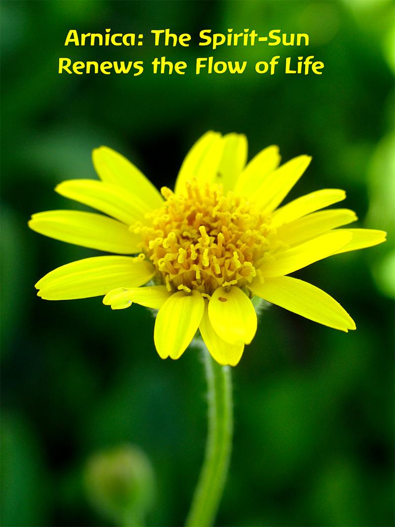 Arnica flower essence brings the warmth of light of our spiritual presence to revivify traumatized regions of body and psyche. The action of the flower essences is similar to the better-known homeopathic and herbal Arnica preparations, with more emphasis on making the connection with the integrity of our Spiritual Self. It follows on the theme of other Asteraceae (Composite Family) flower essences, such as Sunflower, Echinacea and Shasta Daisy, yet with a stronger connection to the flowing waters of life.