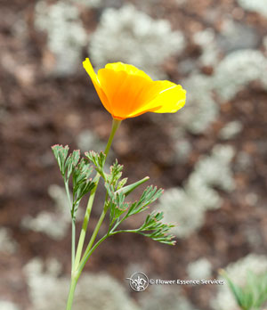 This deeper insight into the soul gesture of the California Poppy helps us to understand why it has traditionally been used as a herbal nervine to calm states of pain, restless anxiety, nervous movement and insomnia. These calming qualities help one to come to a place of rest, receptivity and inner containment. As a flower essence, these same properties of the California Poppy work not only in the body but also the soul consciousness. The California Poppy is one of the key remedies to deal with patterns of addiction, restless seeking and experimentation, along with ever-fluctuating desires. One who needs this flower essence is challenged to learn how to hold life experiences even when unpleasant: pain, anxiety or uncertainty. Gradually the soul learns ever greater inner responsibility, calm containment and self mastery. It is this chalice of gold within the heart that learns to receive and embrace all of life, so that the very light that we seek becomes that light that we radiate as a blessing to others.