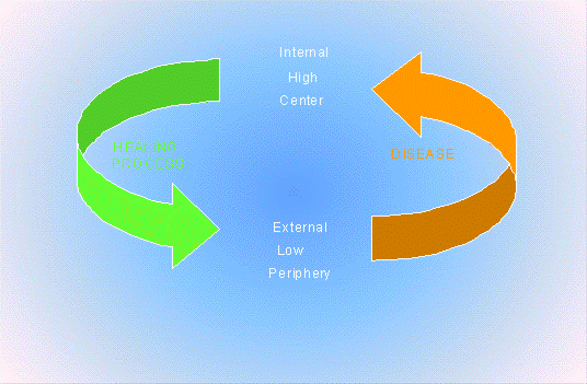 In the healing process, the centrifugal direction must be followed: the therapeutic action must begin from the inside and then get to the outside, from center to periphery, from the top to the bottom, from inside to outside, from main organs to less important ones.