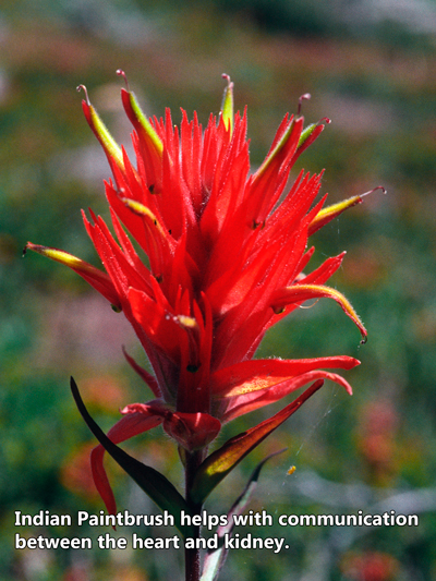 Indian Paintbrush targets a certain kind of condition that is called heart and kidney non-coordination. In Chinese medicine, the kidney is the center of the will and the heart is the center of spirit and inspiration geared toward harmonizing a person when their inspiration is not able to connect with their will. They aren’t able to bring forth harmonious manifestation in the world. Indian Paintbrush helps with the heart and kidney not communicating, but within the specific realm of manifestations. There are other sorts of ways the heart and kidney don’t communicate that Indian Paintbrush does not address, but for this specific application it is quite useful.
