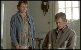 After Ennis learns of Jack’s death he visits Jack’s parents (see photo above) and finally allows a small measure of pain to be expressed. In Jack’s cupboard Ennis finds one of his own shirts hanging together on a hanger with one of Jacks (Jack had clearly placed them there) and lovingly takes them into his arms. He then withdraws from society, moving to live in a trailer outside of town. His loneliness seems total, his grief never ending. In the last scene he touches the two shirts hanging on his closet door beside a postcard of Brokeback Mountain, his eyes well up and he chokes “ Jack Twist, I swear…”