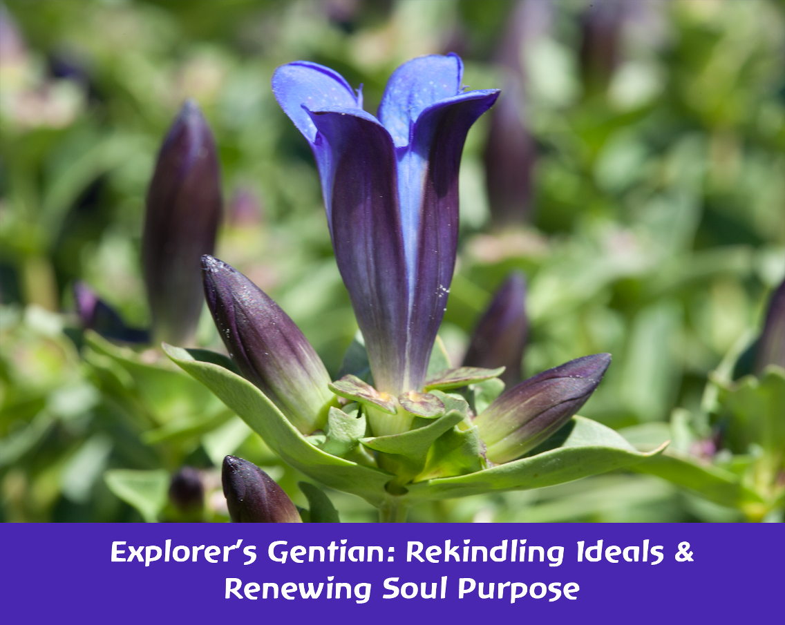 Our research also indicates that Explorer’s Gentian’s use is not limited to only the later stages of life. Anytime that one embarks on a journey to fulfill ideals, it is possible to lose the connection between inspiration and the will force to manifest that vision. For example, we received a case report about how Explorer’s Gentian helped a young college student find motivation in her school work. She loved her major in environmental studies, but she had difficulty getting her work done. She had a strong interest in spirituality and meditation, and spent relaxing times in nature with frequent use of marijuana. After a flower essence program that included Sunflower, Clematis and Explorer’s Gentian, she felt much more awake and focused, less drawn to the ungrounded world that marijuana offered. Others described her as more radiant, and sparkling with energy.