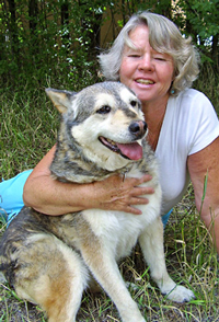 After gaining the necessary background information, Mary Sue does the actual session. She begins with a bridging technique (placing one hand on the throat chakra and one hand on the heart chakra) which she explains is a very good way to connect energetically with an animal. She “explains” to the animal that she would like to do a Healing Touch Session with them. “I think you’ll really like it. It’s very relaxing,” and asks their permission to do the actual treatment. At this point, she does an energetic assessment of the animal using her hands and a pendulum. She will put her hand on the chakra or area in question, and hold a pendulum in her other hand. For her, if the chakra is open, the pendulum goes in a clockwise motion; if it is very open, the pendulum moves in a very big circle. If the chakra is constricted, the circle of the pendulum is not as open. If a chakra is closed, the pendulum does not move or moves back and forth. She continues to assess the whole body and legs, as well. To determine spinal issues, she will work going down the spine one vertebra at a time, using the same process to check for blockages. Often Mary Sue will begin the session doing a basic chakra balance technique. To conduct a chakra balance (if she is on the right side of an animal) Mary Sue starts with her left hand placed on the root chakra and her right hand on the sacral chakra (the 2nd chakra). With the intention for optimal healing and health, after she feels the opening or balance, she places her left hand on the sacral chakra and her right hand on the solar plexus chakra (3rd chakra), and continues to work in this fashion up through the seven major chakras. There are many other HTA techniques which can be used in addition to a chakra balance depending on what is going on with an animal; for example, techniques which help with trauma release or for help with grounding and focusing for animals who are scattered and "spacey," etc. Each session is tailored for each individual animal. Once the energy field is cleared, energized and balanced, the animal will experience major relaxation. Mary Sue is gratified to see how deeply animals will relax. If a horse's tongue is hanging out of its mouth, she knows it is truly relaxed; "That's what you want to see...or a big sigh is really gratifying."