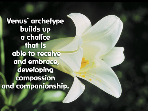 Venus calls in some white lilies such as the prudish White Trumpet (Easter) Lily; or the wonderful—and yet strange in form and shape— Desert Lily , which helps us to see beauty around us even in the most deserted or perturbed surroundings. But it also resounds in the shy and timid Pink Monkeyflower , the sensitive Pink Yarrow and of course, the subtle Star Tulip , that re-creates within us the “anima” of the feminine.
