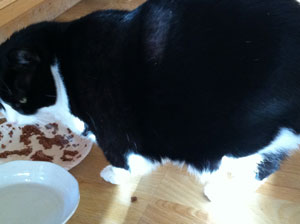 the cats’ food was still being picked up after meals, so it wasn’t possible to determine whether she had kicked the habit of eating everything or not.