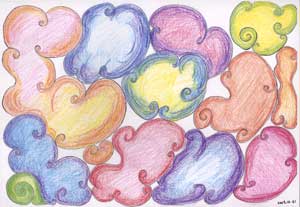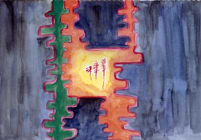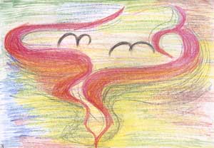 Comments on the case by Patricia Kaminski: I was impressed to see how the artwork presages the event of her becoming pregnant...a number of pieces show various aspects of “womb enclosure” or “spirit making contact” – these were drawn before Keiko got pregnant but when she was taking flower essences to work with the various soul issues. I think Angelica and Indian Paintbrush [were] very pivotal in her case – helping her to align creative forces – which for her particular creative destiny brought her to bringing a child into the world.