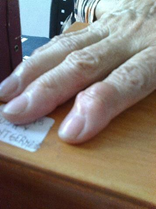 In the beginning, she had an extrusion of synovial fluid in the right hand, which was painful and prevented her from articulating the finger. The Hospital, where she used to go for assistance, recommended surgery (the diagnosis was hand osteoarthritis).