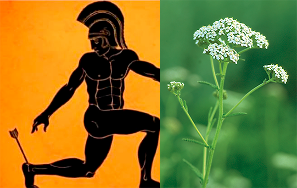 For example, the Yarrow plant ( Achillea millefolium ) was named for the Greek warrior Achilles. It was also known as "Knight's millefoil" and was carried into battle not only for it's ability to stop bleeding, but also for spiritual protection. This parallels the use of the Yarrow essence for those who are overly sensitive and vulnerable and need psychic protection and soul centering.