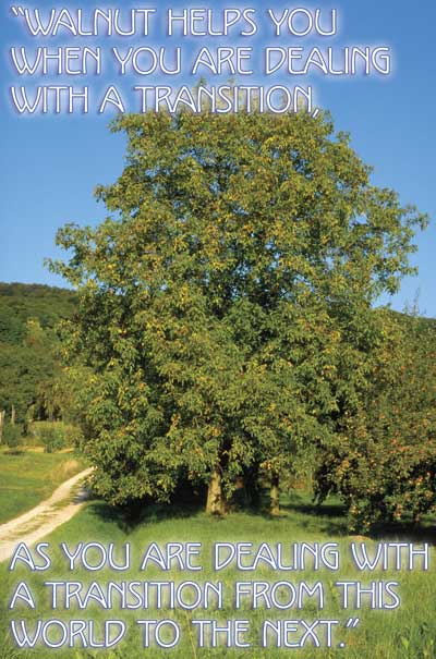 There were always seven or eight family members sitting around the periphery of the room surrounding his bed. His wife would ask me, “When do you think he’s going to get out of here? When do you think he’s going to be better?” She was in so much denial despite me telling her, “He’s dying, I don’t know if he’ll make it out of here.” He never spoke, but he was there, he was awake, and you could tell he could hear you and would nod to my questions. It was very sad. I was just starting to use the essences and I only had Walnut at that point. I went into the room and explained what essences are and said, “This helps you when you are dealing with a transition, as you are dealing with a transition from this world to the next.” He looked me right in the eye at that time—he had not made eye contact prior to that—and I said, “I can use this with your family as well because they’re facing a difficult transition, too.” He literally reached his arm up to me, which he had not even moved prior to this, and put his wrist in front of me to put it on him. This was so profound to me, because this man had not moved for days. Then, he turned his arm over to his wife who was in the corner crying and motioned to her. So I offered it to her; though crying, she accepted it. I went around the room and offered it to each of the family members. It was an amazing experience. For the nurses, that was their first experience with any of the essences and they felt that this was profound too, because he actually asked for Walnut every four hours; just like patients ask for morphine, he asked for Walnut .