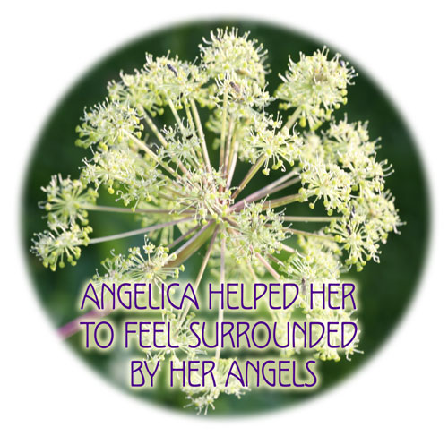 I then introduced B. to the flower essences and told her about Walnut , how it would help her with this transition. I didn’t say “transition from this world to the next” like I usually say, because I didn’t know where she stood at that point. She had always wanted to do everything possible for her recovery, as did her husband. So I said to her, “…this transition from being healthy and walking around to being in bed and being in the hospital.” I also said, “Your children can use it too, because it is a transition for them as well.” I knew as a mother she would feel good about that. Probably her primary and sole concern was really about them. Then, I explained the use of Angelica , to be surrounded by her angels, and Angel’s Trumpet to help her focus from the physical realm which caused her so much pain and discomfort and to help her visit more of the spiritual realm (which I’m sure she’d been to many times).